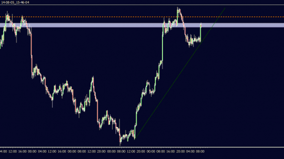 Price ranging between support at 1285.25 and resistance at 1287.50 . The previous top of the channel acting as support for the recent decline. After the long bullish move to 1292.50 and subsequent retraction we’ve come to some indecision with the price ranging with support at the present on