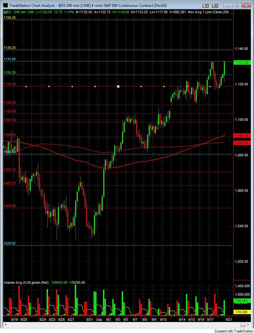 Move on resistance for the weekly Point of control at 1133.25 This is a key area on the S&P500 emini futures contract as buyers will be gaining control for the move to an extreme high of 1156.25. This is a low volume march upwards to 1140.