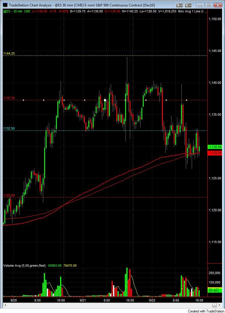 S&P500 day trading course live day trading room looking at price action on the 30 min chart.