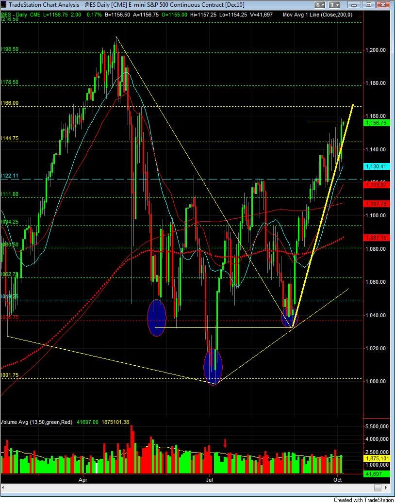 The Inverted Head and Shoulders has almost completed its equidistant move to 1166 with a very powerful move up on low volume.